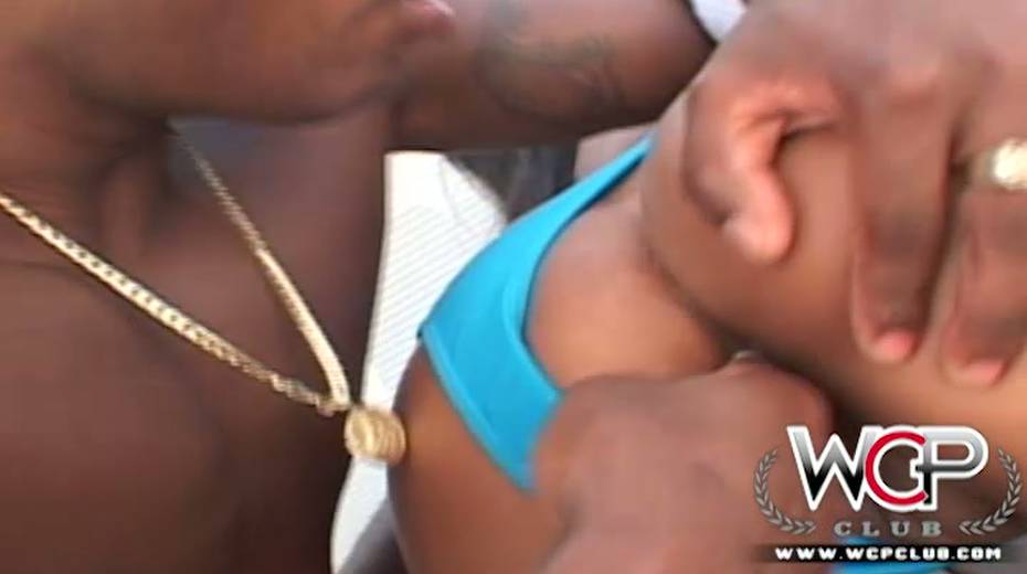 Sizzling hooker in sexy blue bikini getting her ass licked