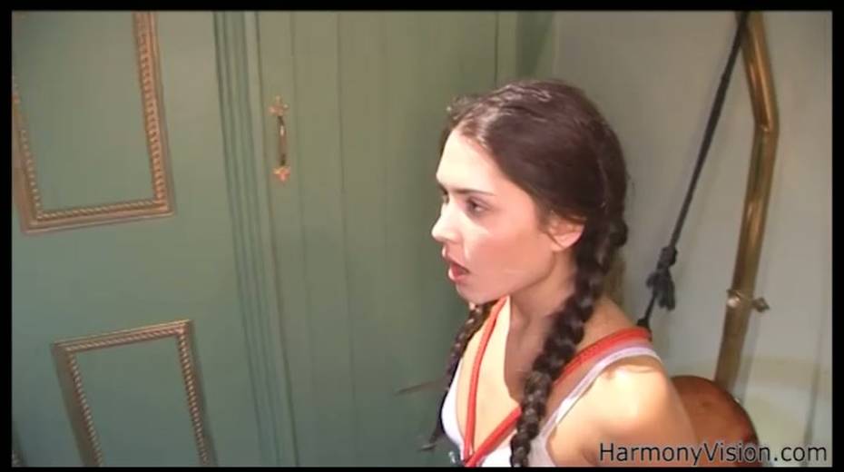 Tied up hottie looks her slim kooky getting double team fucked rough