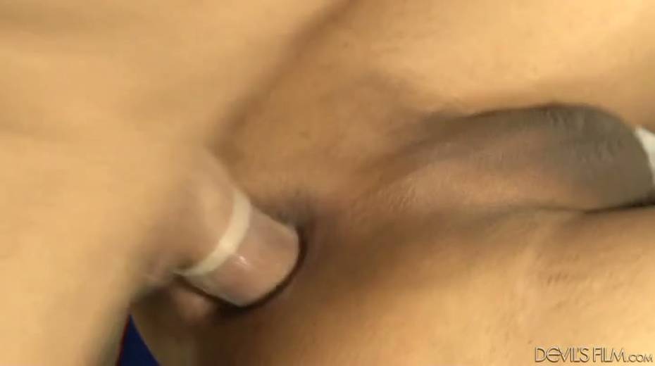 Black haired tranny completely concentrates on her own pleasure while on top