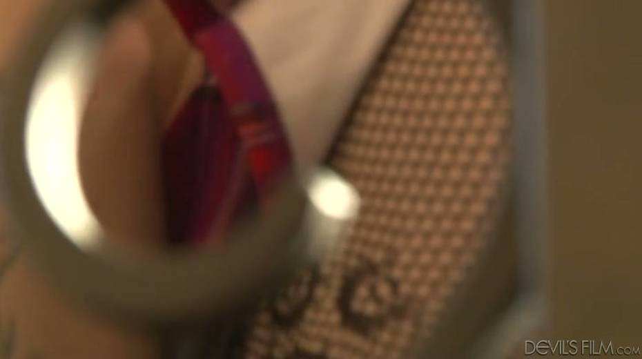 Feminine looking shemale posing for camera in nylon pantyhose