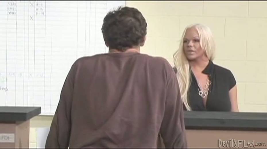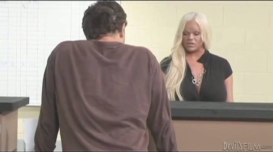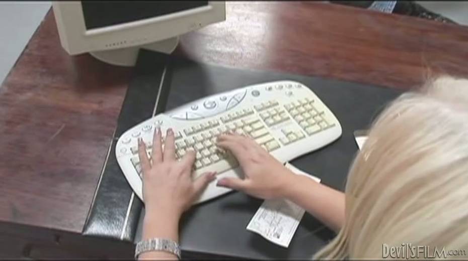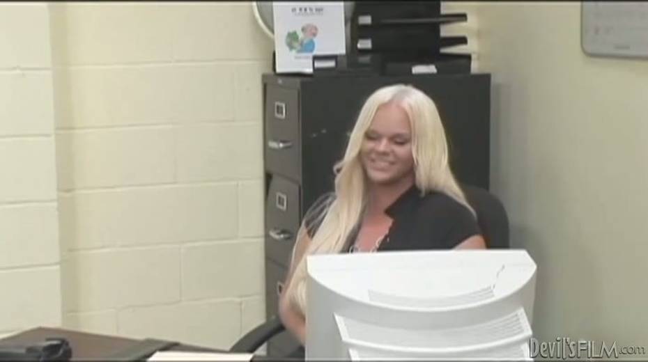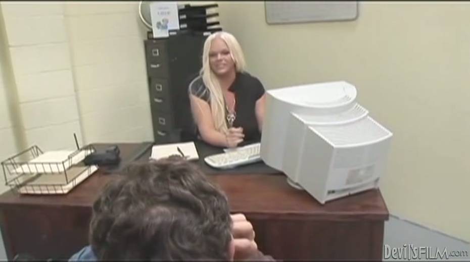 Transsexual boss sucks her new employee's cock like a true whore
