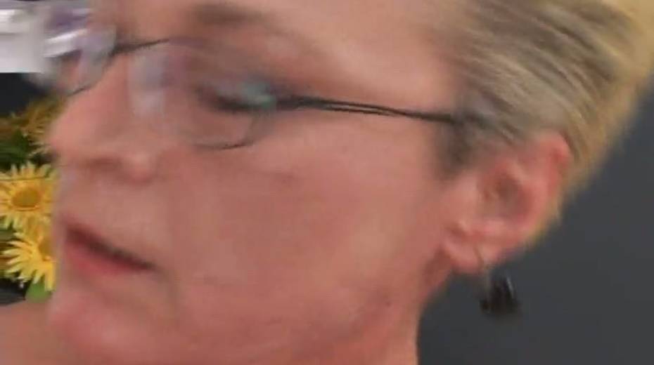 Foureyed grandma riding young stud in reverse cowgirl pose
