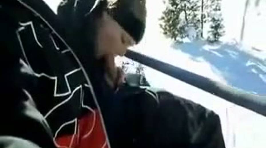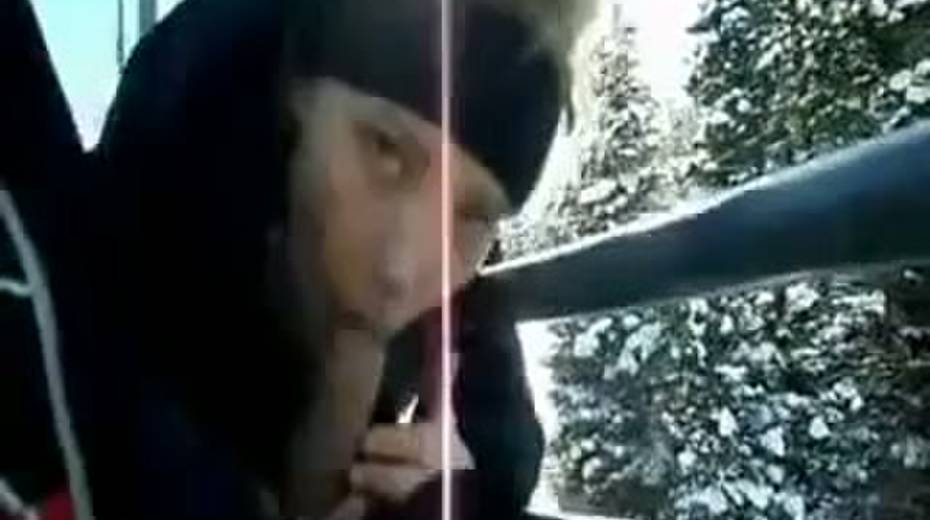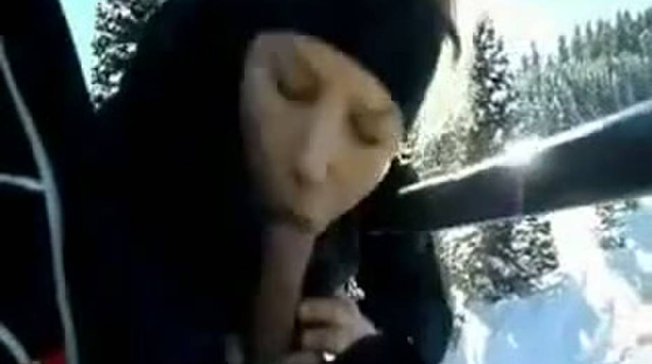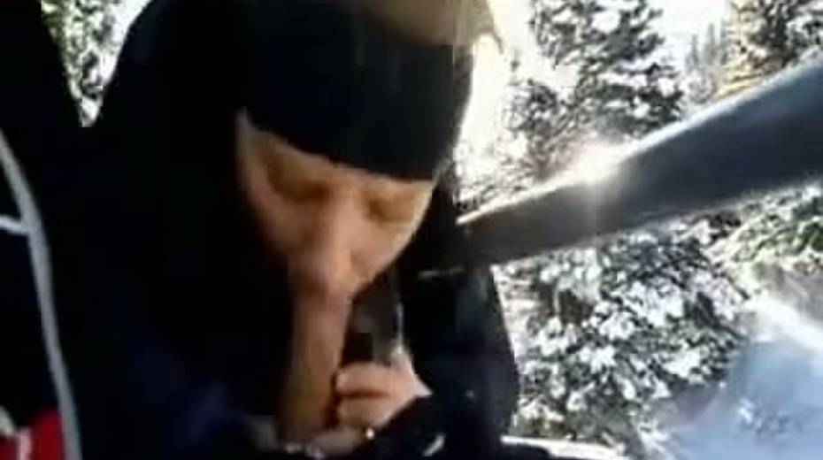 Thirsty blonde girlfriend giving head on a cabelway