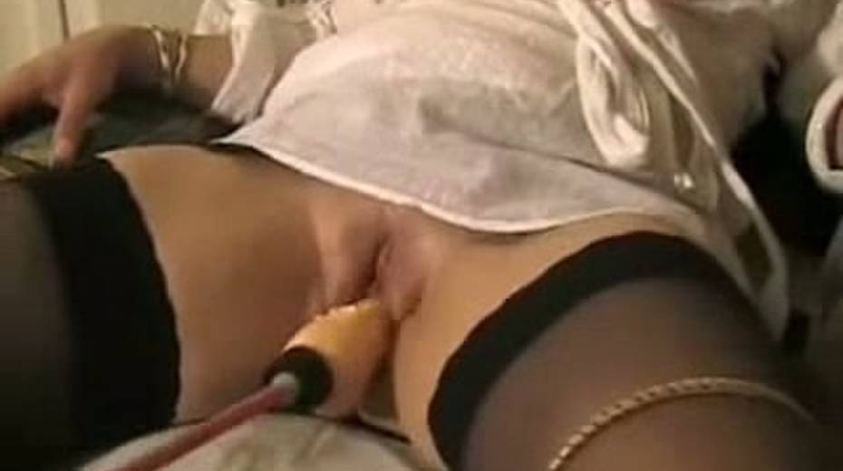 Mature slut reaches squirting orgasm when she gets fucked with sex machine