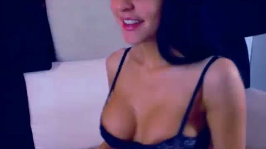 This sensual brunette with big tits strips for her online viewers in a sexy way