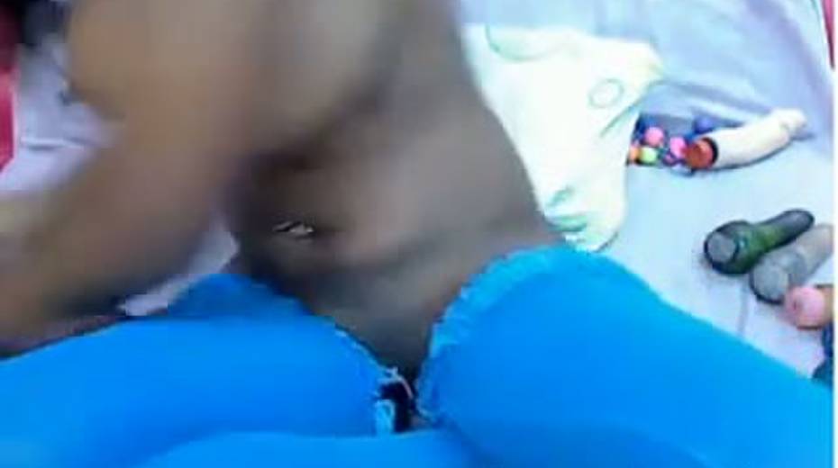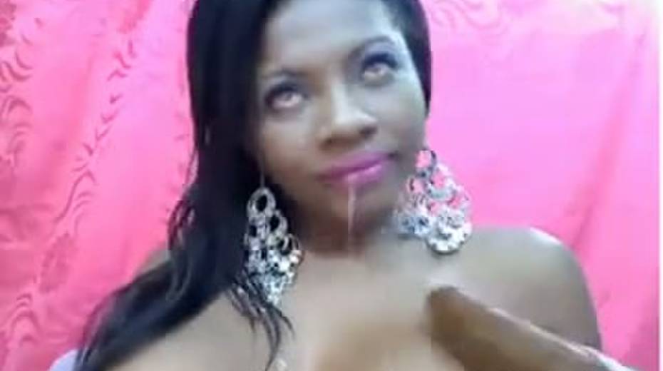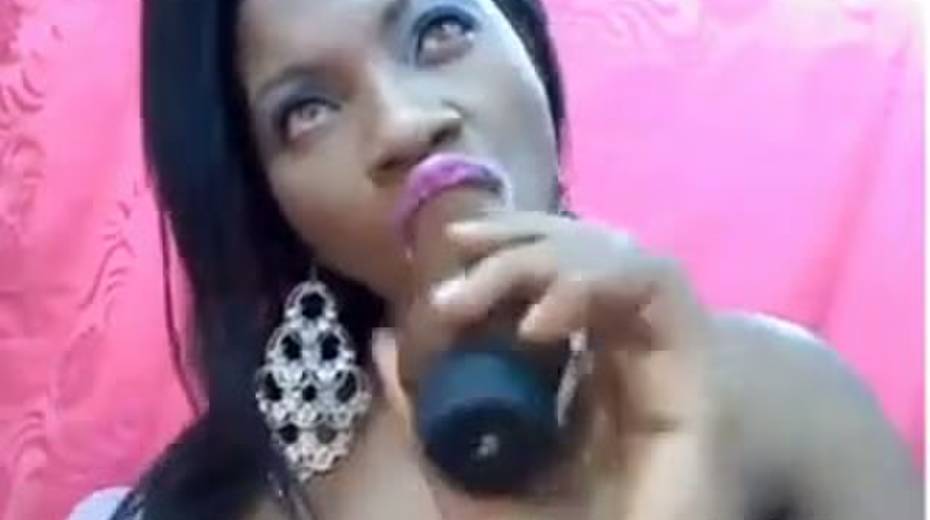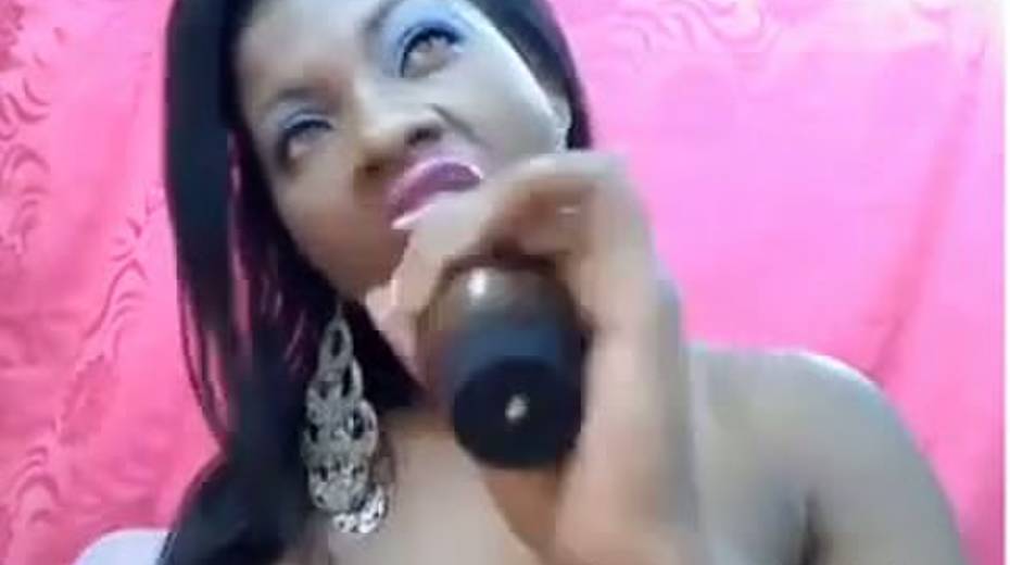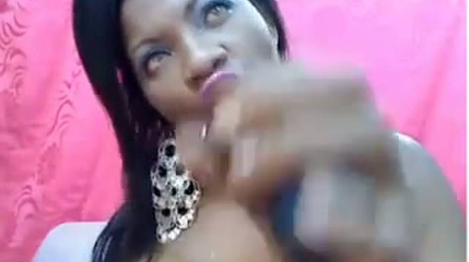 Busty ebony chick is toying her both holes on webcam