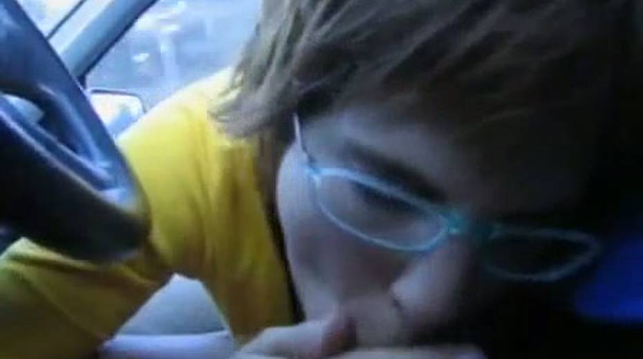Four eyes amateur slut sucking short dick in a car