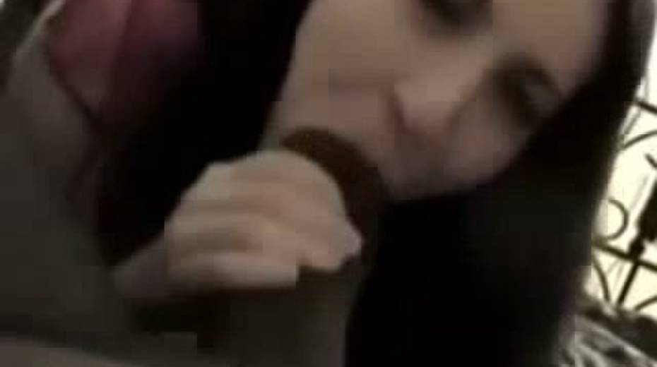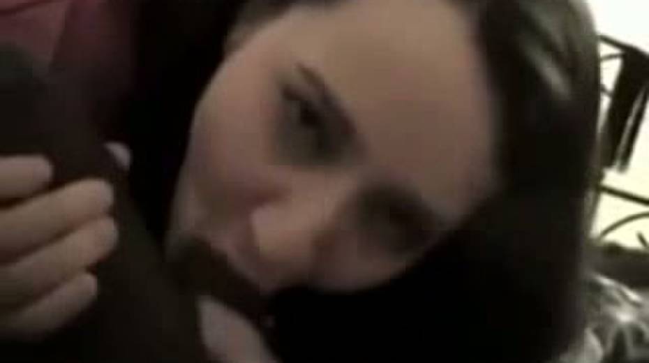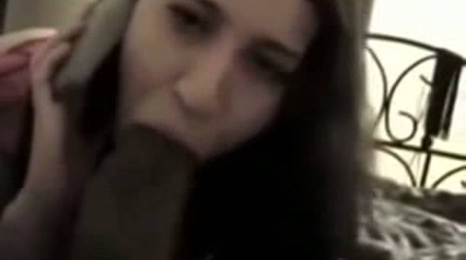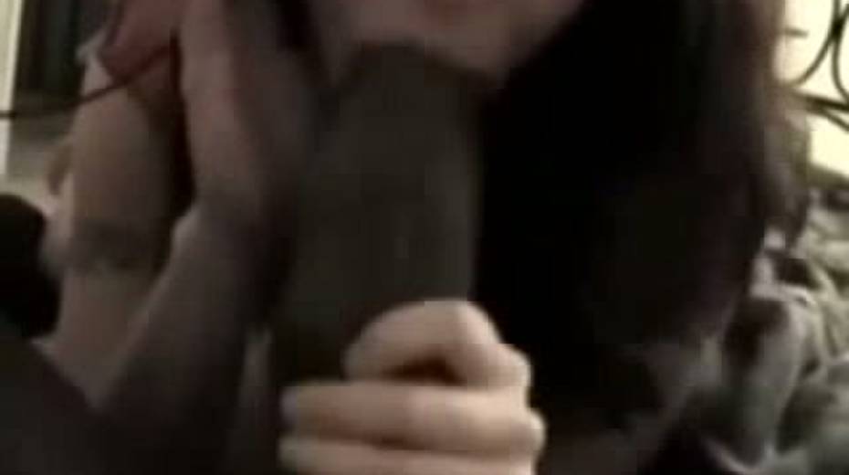 Skanky girl sucking big black dick while talking to her BF on a phone
