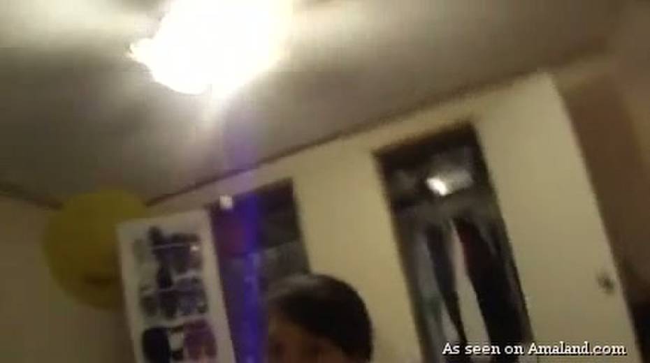 Brunette babe sucking big cock greedily in amateur video