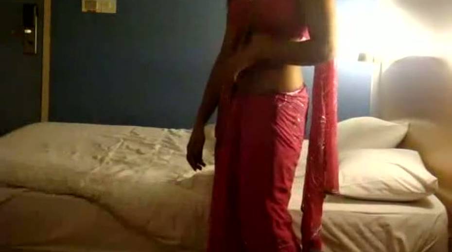 Sexy amateur girl in Indian traditional dress caressing her man
