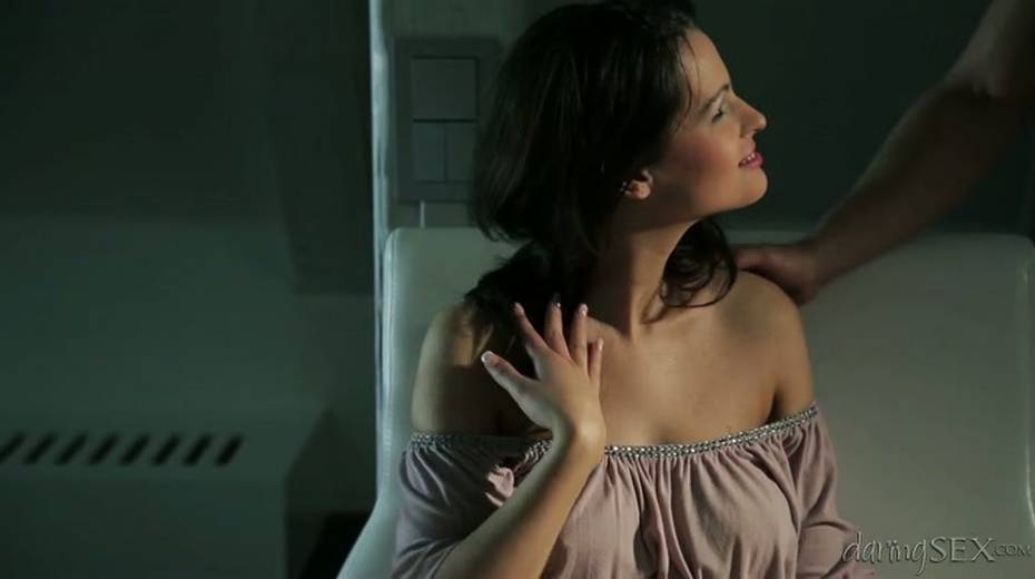 Awesomely cute brunette with beautiful big boobs gets her pussy eaten out