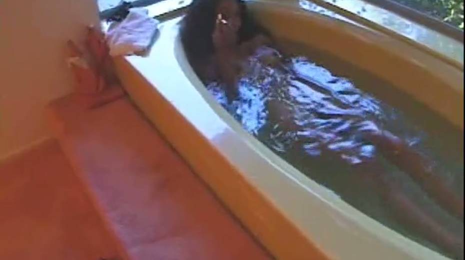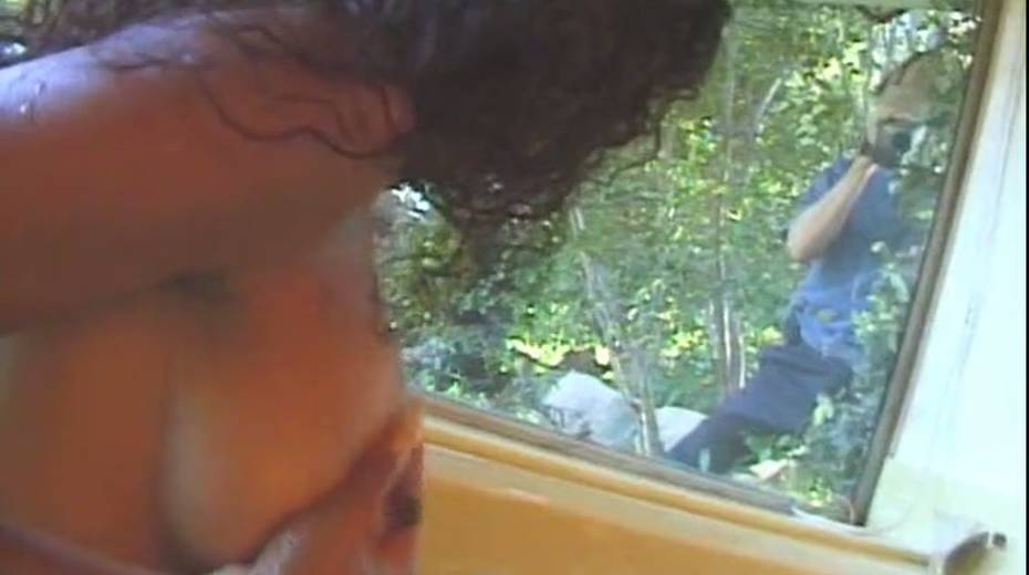 Curly haired beauty with big luscious boobs sucks the cameraman's dick