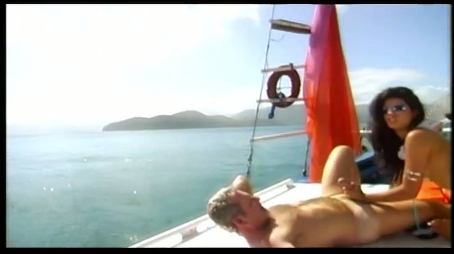 This classy brunette is having an unforgettable threesome on the boat