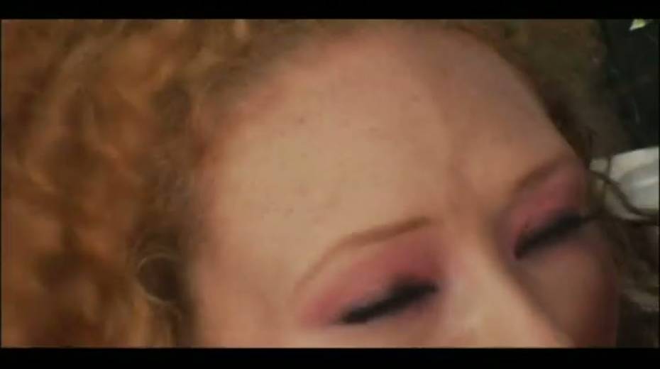 This curly haired floozy is getting fucked senseless by two cocks at once