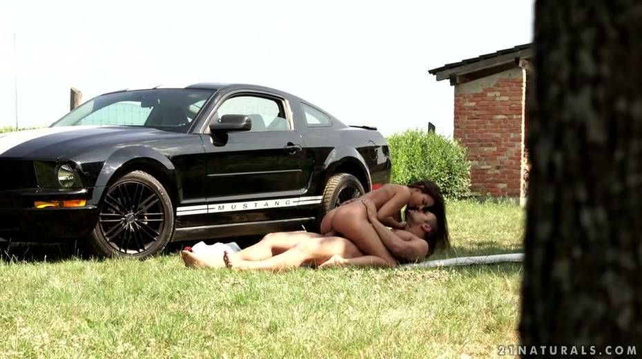 Gorgeous long haired brunette cowgirl gives BJ and enjoys outdoor anal