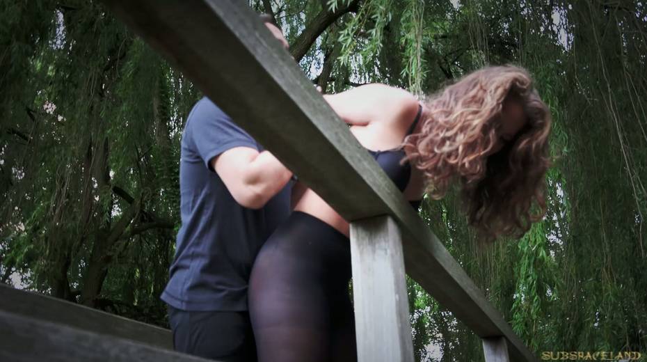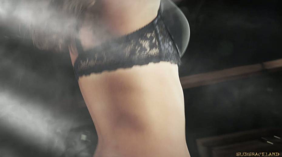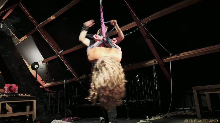 Daring blonde teen restrained and throat fucked in BDSM clip