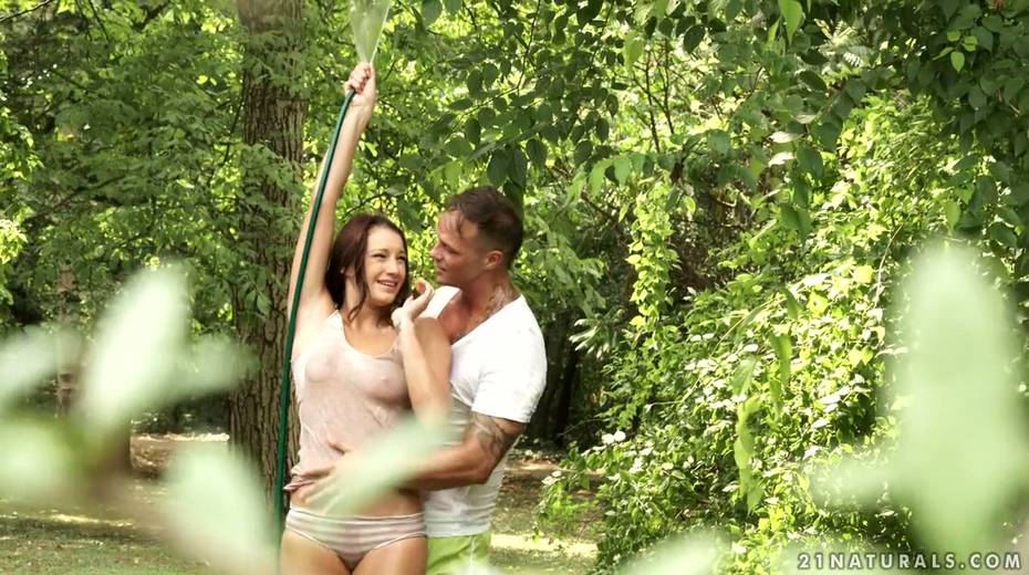 Passionate sex with beautiful babe Felicia Kiss in the garden