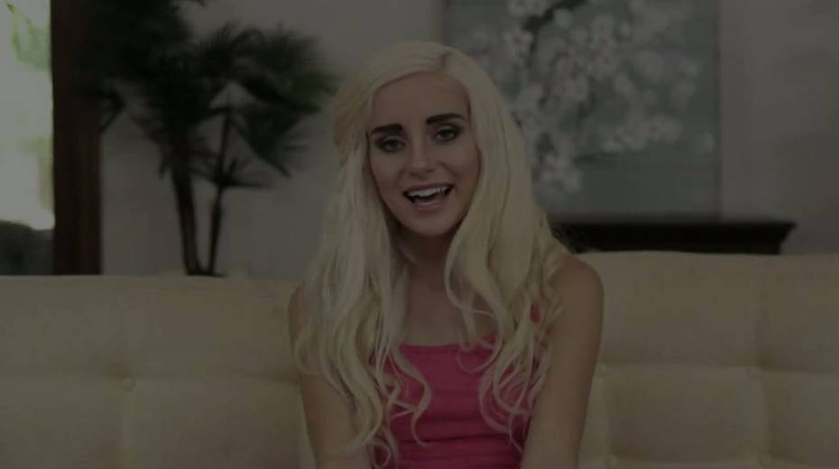 Cute blonde with charming brown eyes gives tugjob on a pov camera