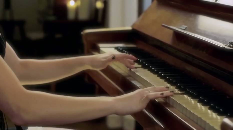 Romantic pianist gives good sensual blowjob to her man