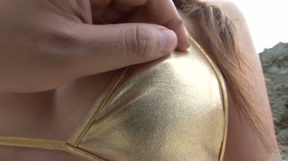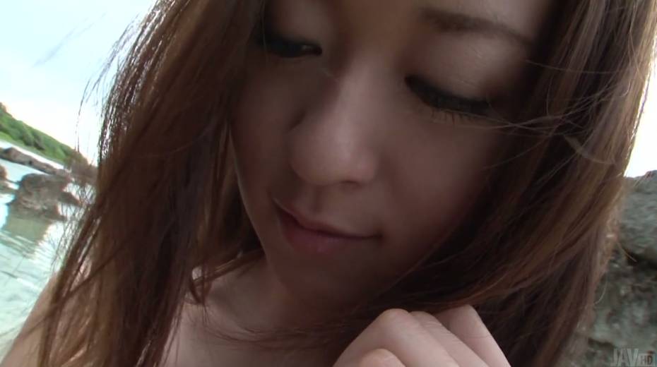 Pretty Japanese gal Risa Misaki shows her ninnies and gives blowjob outdoor