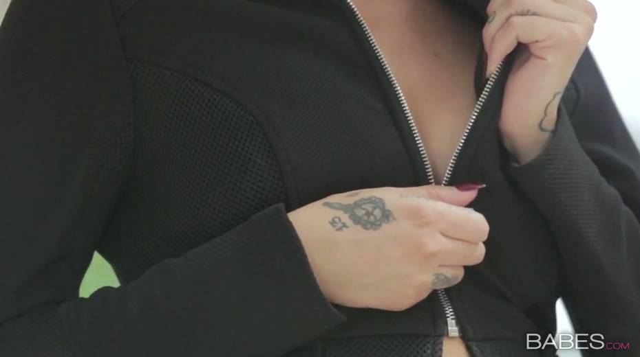 Fucking hot tattooed babe Emma Mae fucks herself with dildo