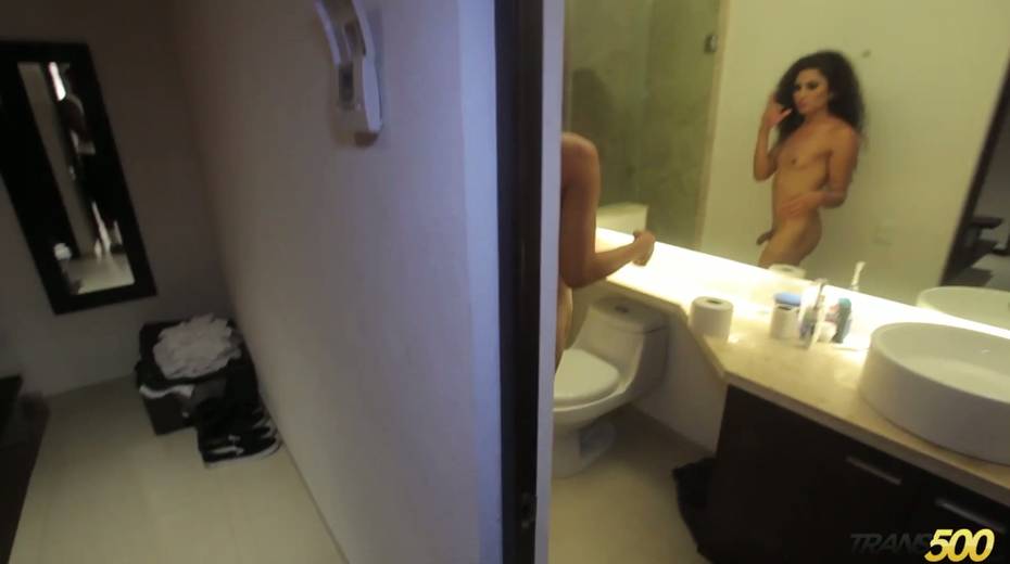 Petite shemale Perla Rios is posing on a camera