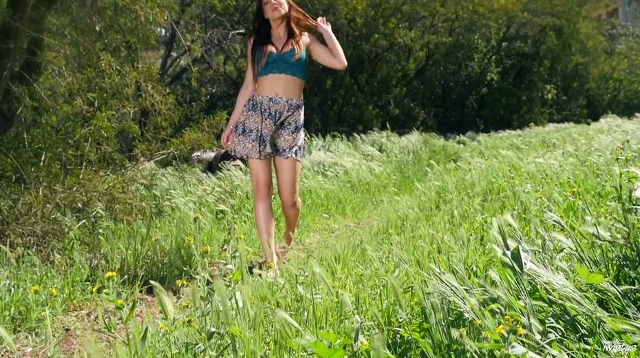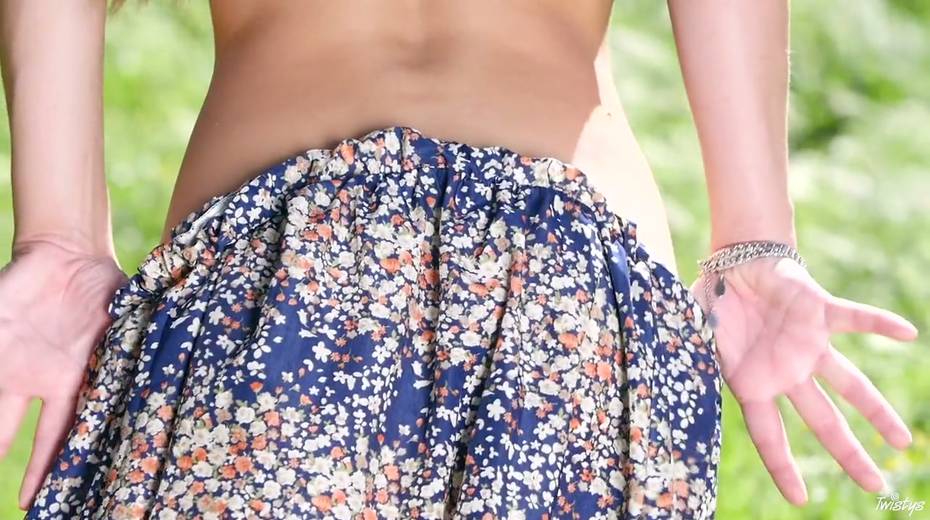 Alluring brunette Aidra Fox takes off skirt and masturbates outdoor