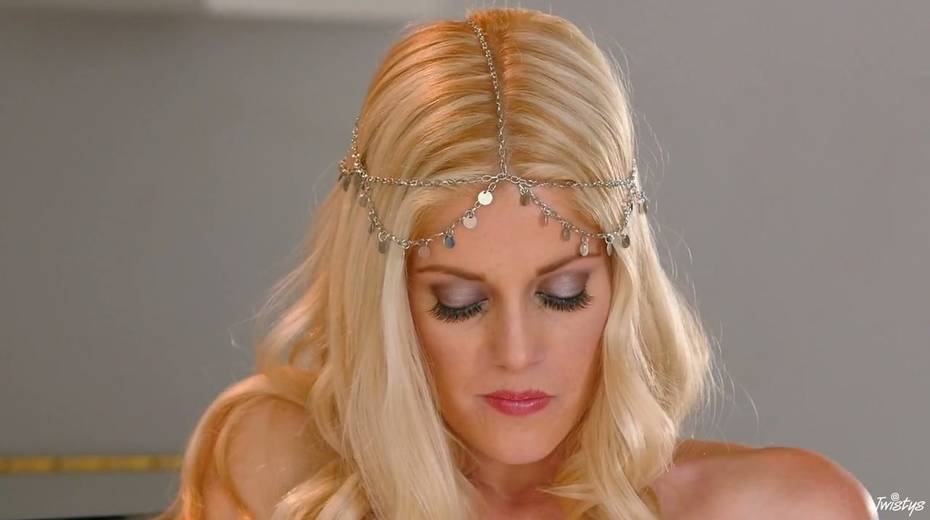 Graceful blonde Charlotte Stokely enjoys playing with her slit