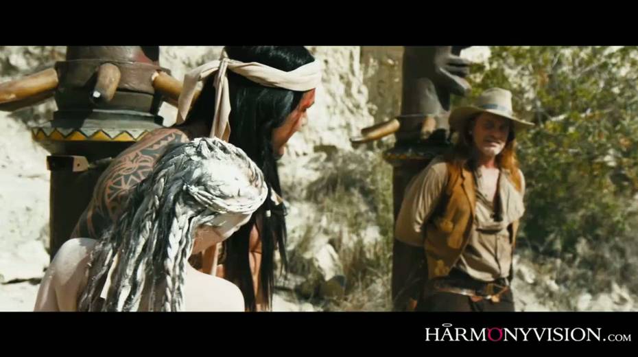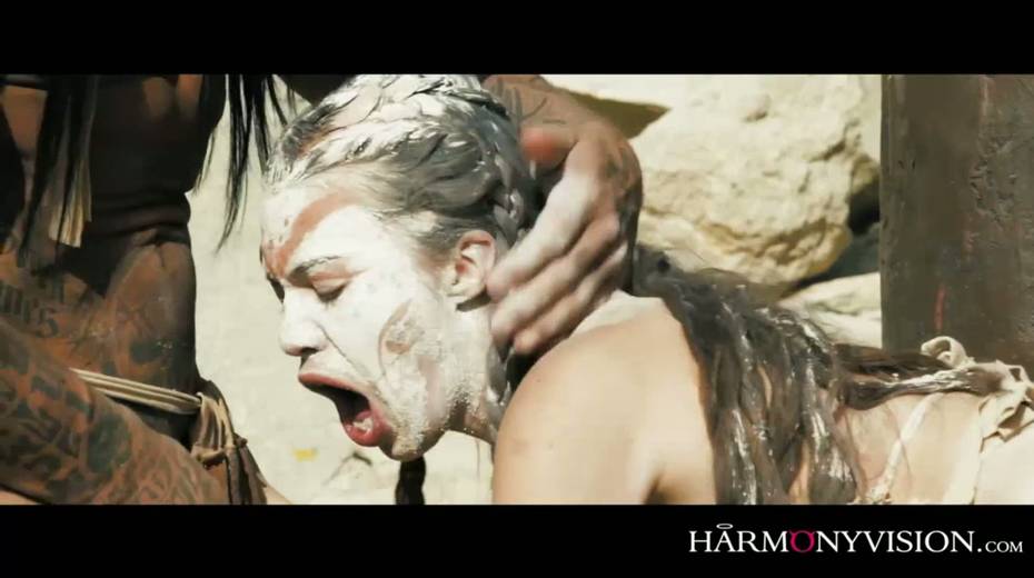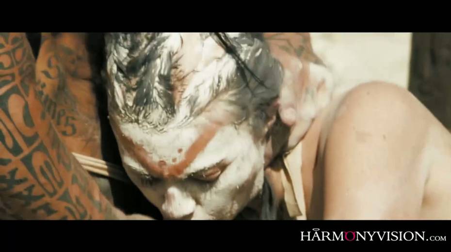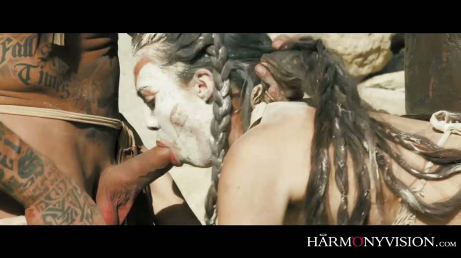 Tribal bitch Tiffany Doll gives blowjob to a duo of foreigners