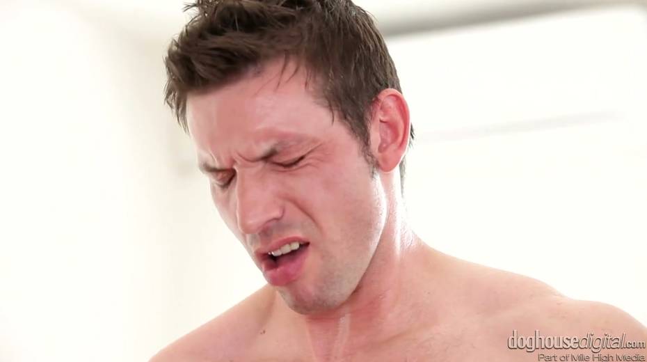 Two bisexual dudes fuck each other and cum on sexy babe Jenny Simons