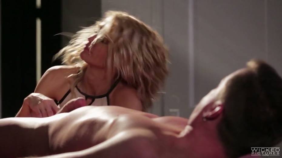 Curly blonde Jessica Drake gives splendid blowjob to one horny dude