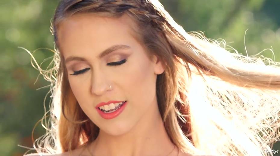 Slim porn model Stefanie Joy enjoys masturbating pussy outdoor