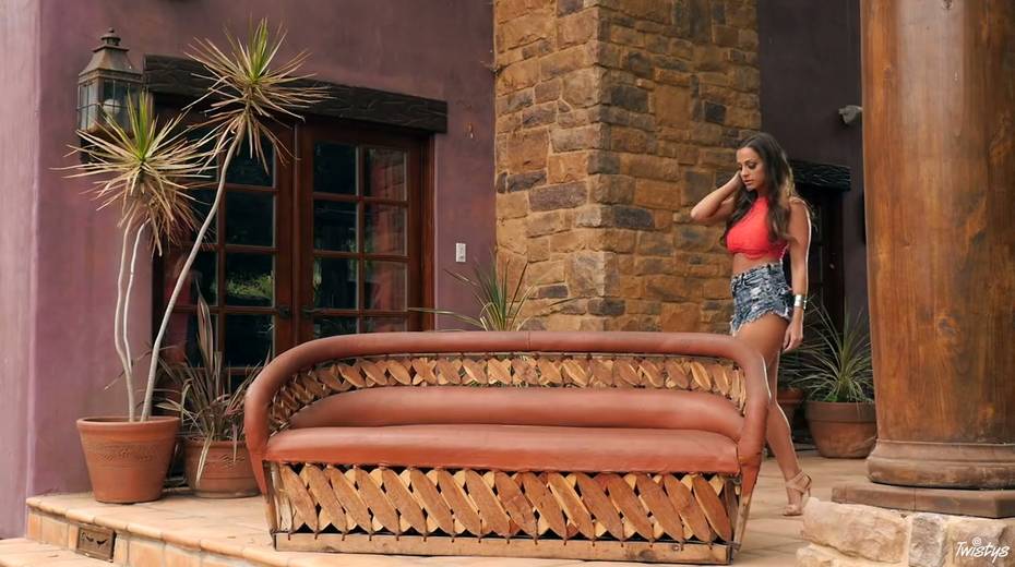 Fucking hot tanned babe in shorts Abigail Mac strips and plays with muff