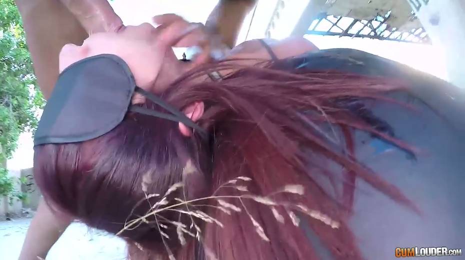 Dirty blind folded bitch Lucia Nieto gives good blowjob and gets doggy fucked