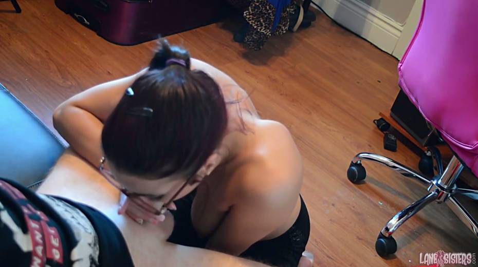 Shy secretary wearing glasses Shana Lane gives great blowjob