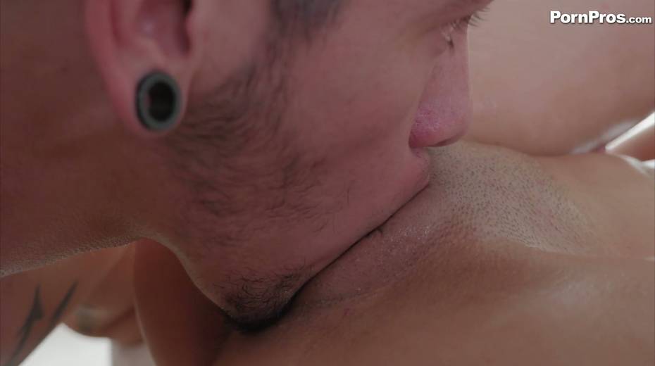 Oiled up chick Elsa Jean gets her oiled up pussy rammed on the massage table