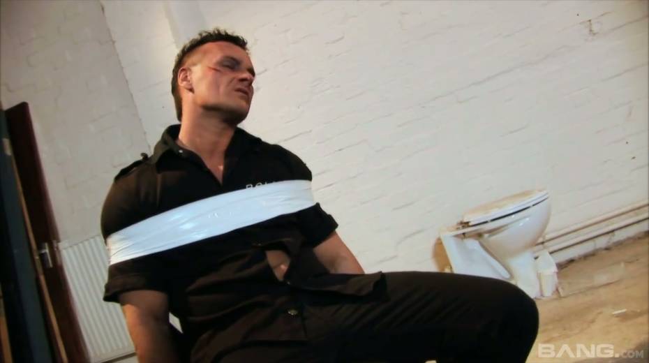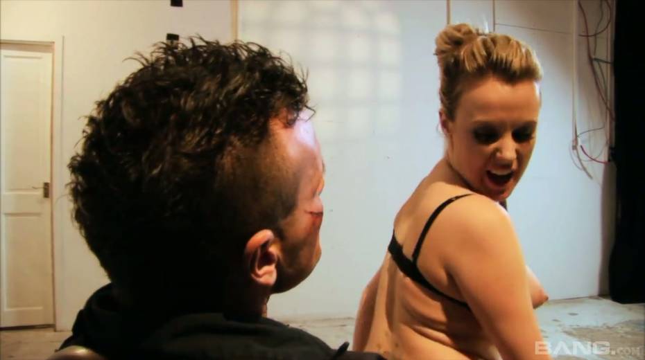 Hottie Syren Sexton wearing sexy lingerie and stockings teases one tied up dude