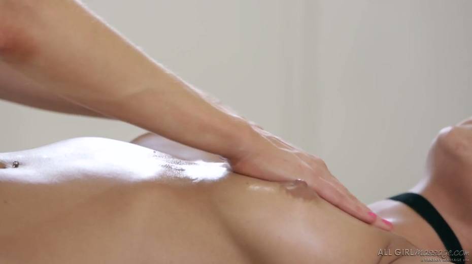 Horny masseuse and beautiful client Chloe Amour are making love in scissors pose
