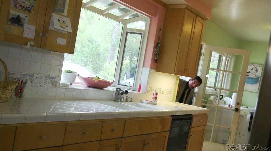 Provocative housewife Reena Sky gets her pussy licked in the kitchen
