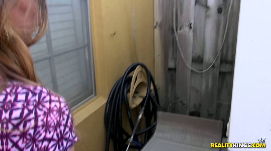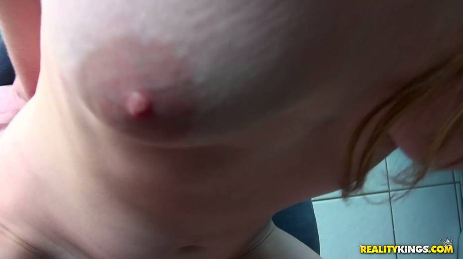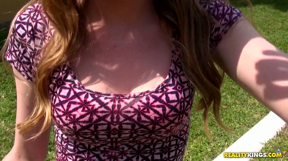 Red haired chick with freckles Roxy Nicole gives outdoor blowjob and gets fucked indoor