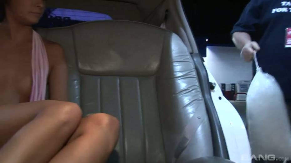 Cheap whore is having fun with two dudes in the back seat