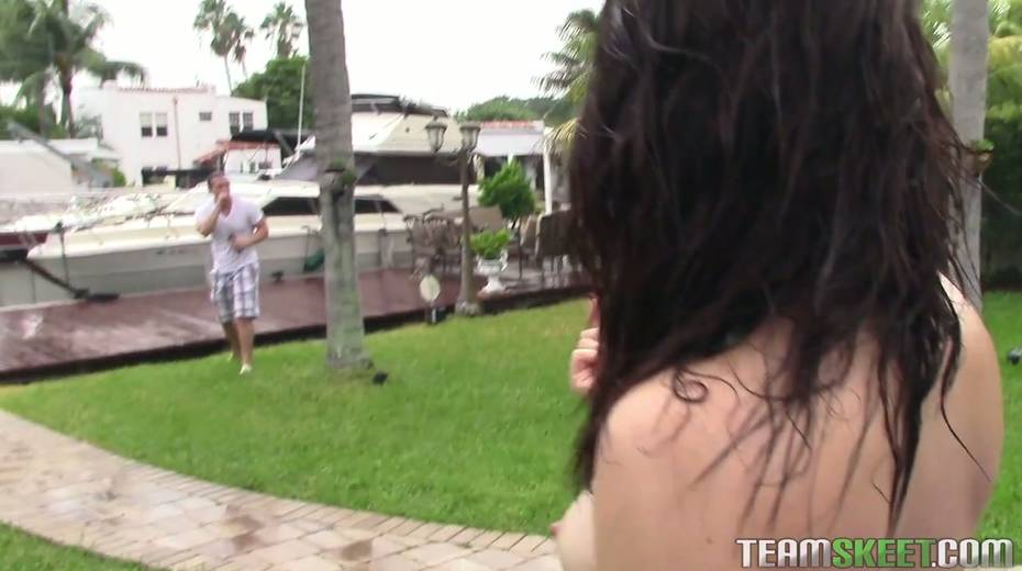 Sexually charged chick Kimber Woods is having dirty sex by the poolside