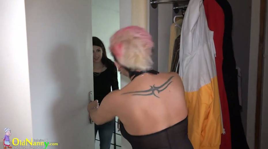 Skinny brunette fucks stretched anus of mature lesbian chick Sandra