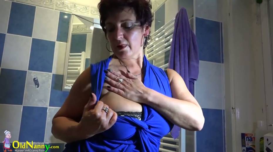 Huge black dildo makes mature chick fully satisfied in the bath tub