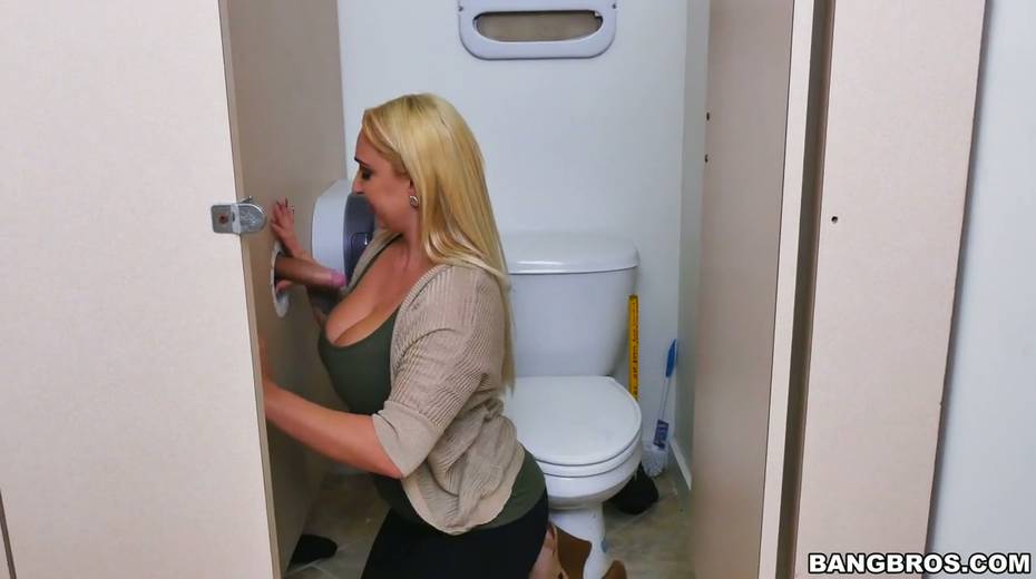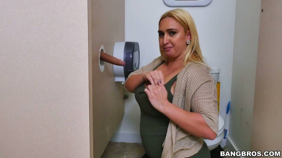 Plump blonde Nina Kayy blows dick in glory hole