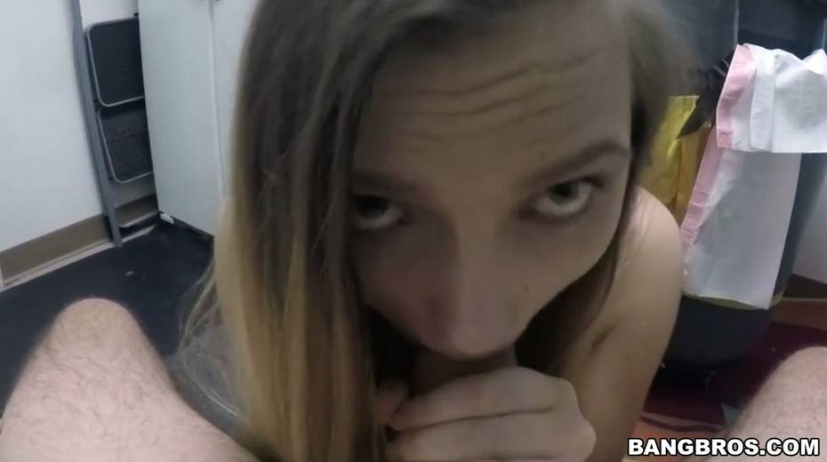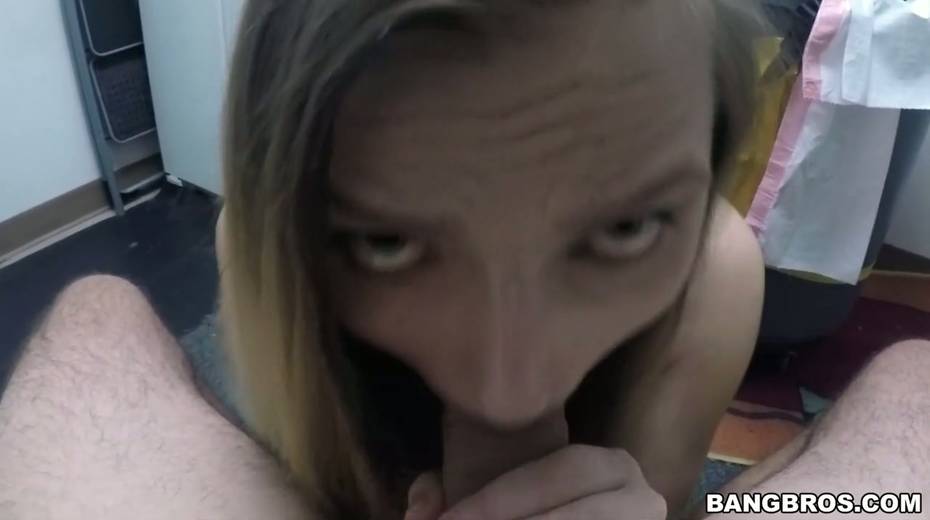 Slutty housewife Layna Landry gives pov blowjob and swallows sperm