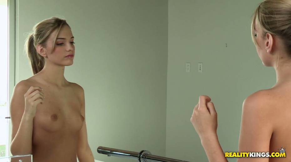 Horny Riley Reid gives tongue job to sex-appeal babe Kenna James