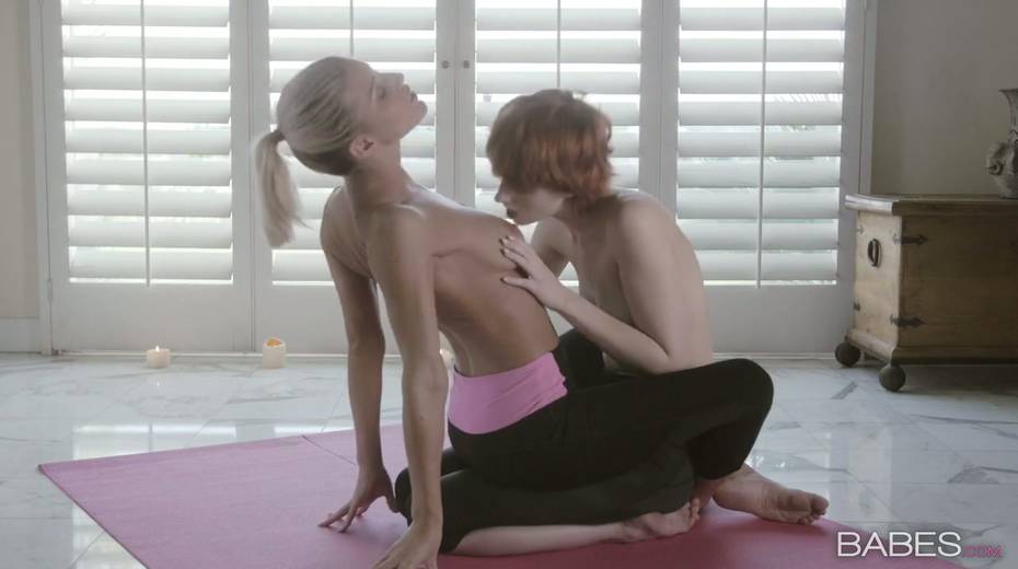 Yummy lesbians Rose Ballentine and her gf are making love after yoga session