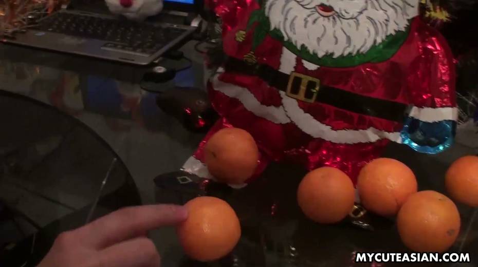 Cute Asian wearing Santa outfit gives her head on a pov camera