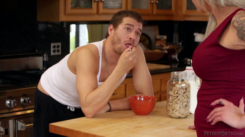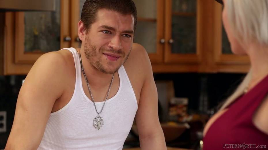 Housewife Nina Elle is fucked in the kitchen by one handsome guy
